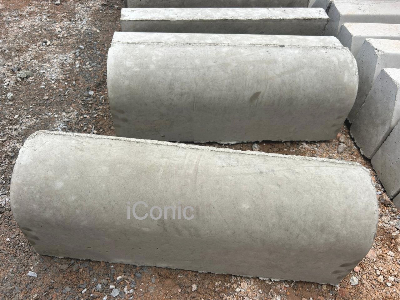 A Half Battered Concrete Road Kerbs(H 215 x D 130 x L 610mm) is sold per piece. 1.67pcs in a running meter. MOQ (minimum order quantity) 100 Poles per truck. MOQ limit is for free delivery only. For self collection MOQ does not apply. Free delivery covers 5KM or less from iConic Concrete Group. Delivery for further than 5KM depends on distance.